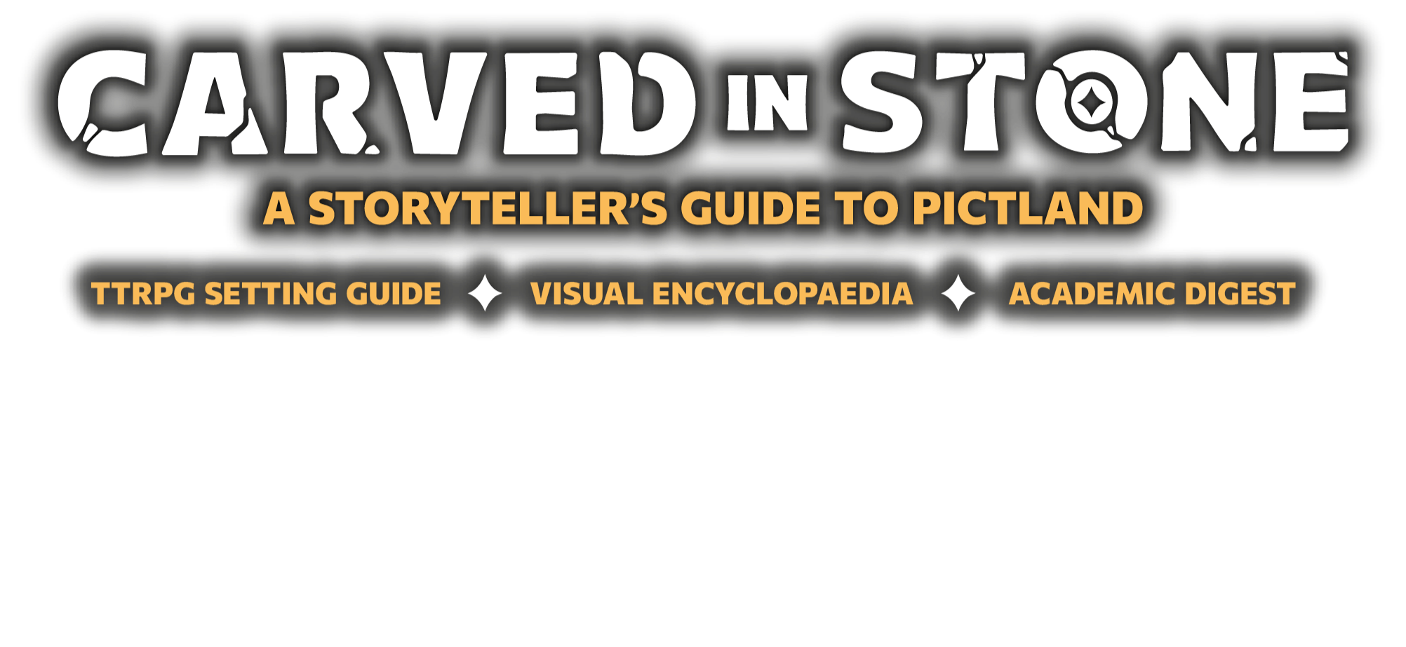 If you're familiar with TTRPGs, like Dungeons & Dragons, you would call Carved in Stone a setting guide. This book summarises much of what we know about what life was like for the Picts in the 7th century, and its goal is to empower you to explore and play with the past.The books is filled with “functional” information, focusing on all the practical and necessary details that a storyteller would need. Topic by topic, you'll have access to the building blocks necessary to tell stories set in Pictish Scotland. This could include playing TTRPGs, writing fiction, or getting involved with LARPs or reenactment.