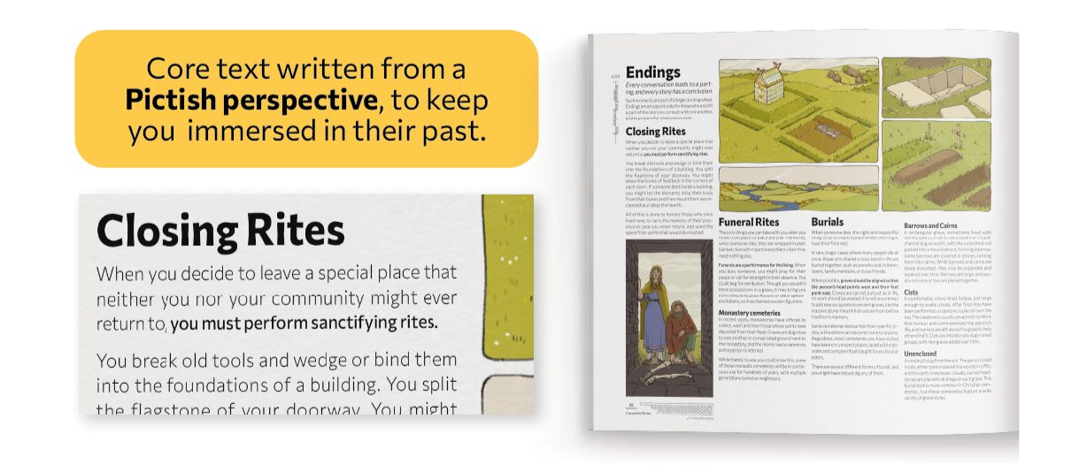 It's part setting guide, immersing you into Pictish lore by framing it as if you, the reader, were a 7th Century Pict.