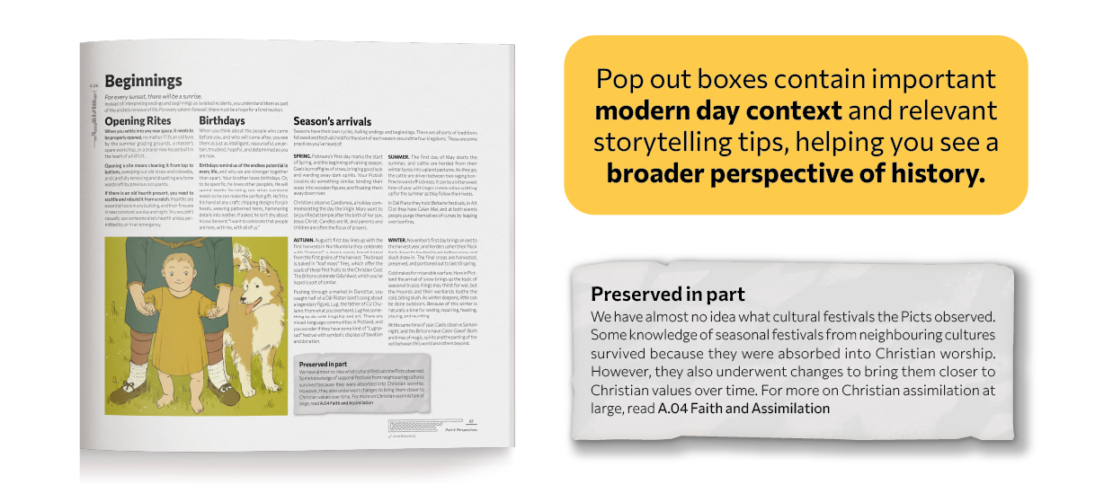 Reframe your 21st century understanding of the world, to see it from those in the 7th century. Witness the spiritual, the magnificent, and the divine, and how they weave their way through Pictish society.